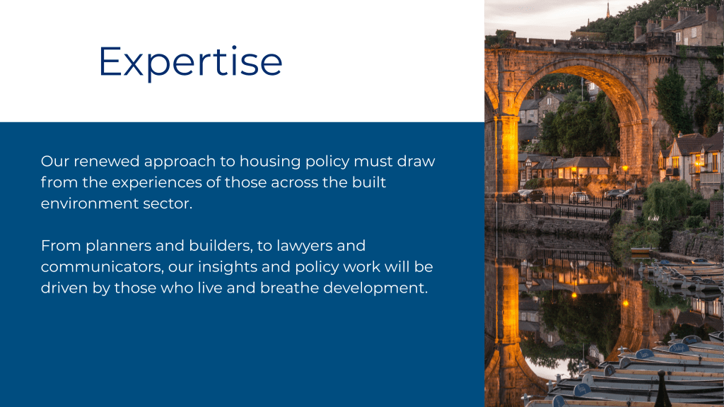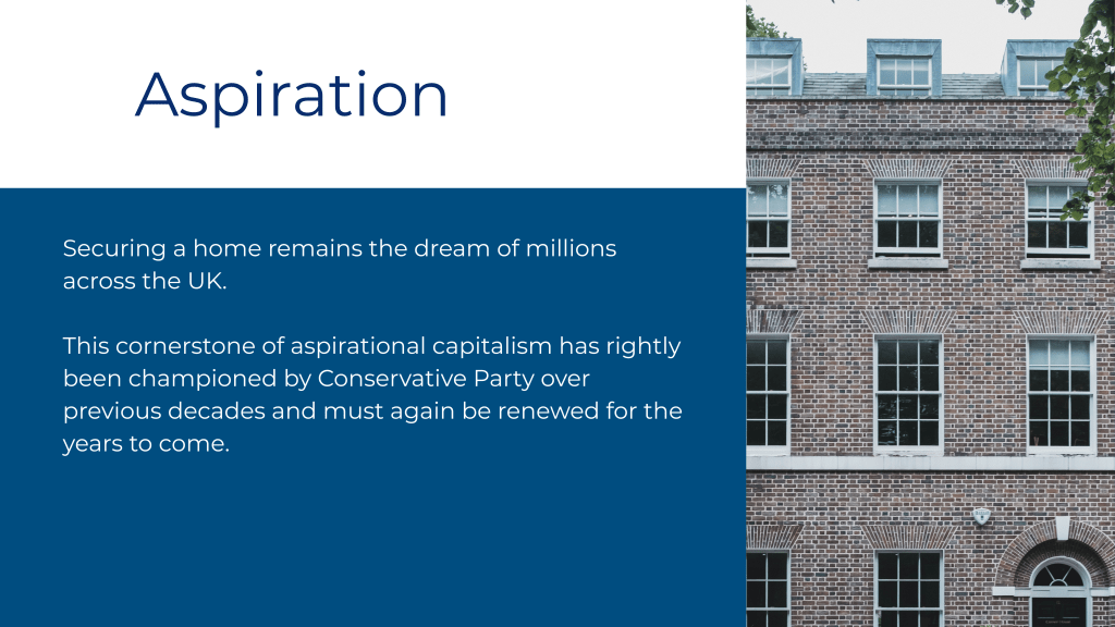 ‘To enshrine the importance of securing a home as a core belief within the Conservative Party and to affirm the housing development, placemaking and the construction sector at the heart of the future policies for economic and community growth in the UK.’